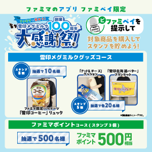 スタンプ開催期間中に、ファミマのアプリのバーコードをスキャンして対象商品1個ご購入につきスタンプが1個たまり、スタンプ交換で特典に応募できます。