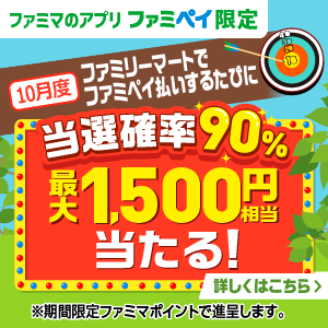 ファミリーマートでファミペイ払いをすると、ゲーム挑戦権をファミマのアプリ「ファミペイ」上に進呈します!ファミペイ払いするたびに最大1,500円相当が当たるチャンス!