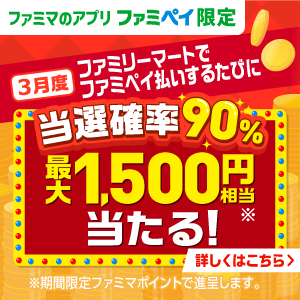 3月6日(金) ~ ※期間限定ファミマポイント付与日:翌月末日まで
